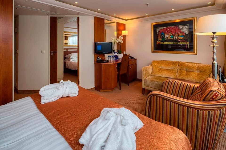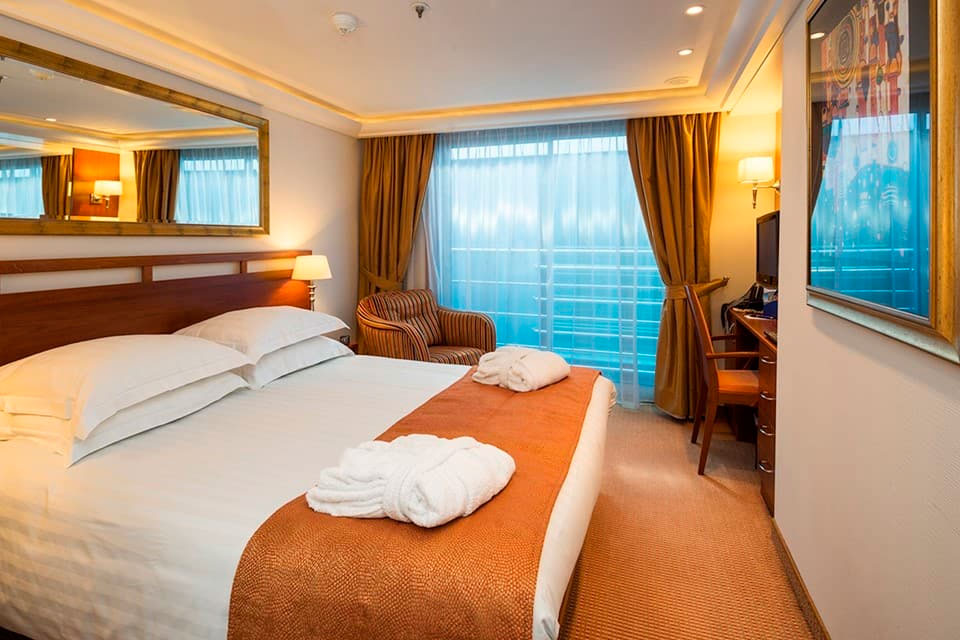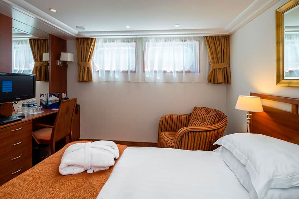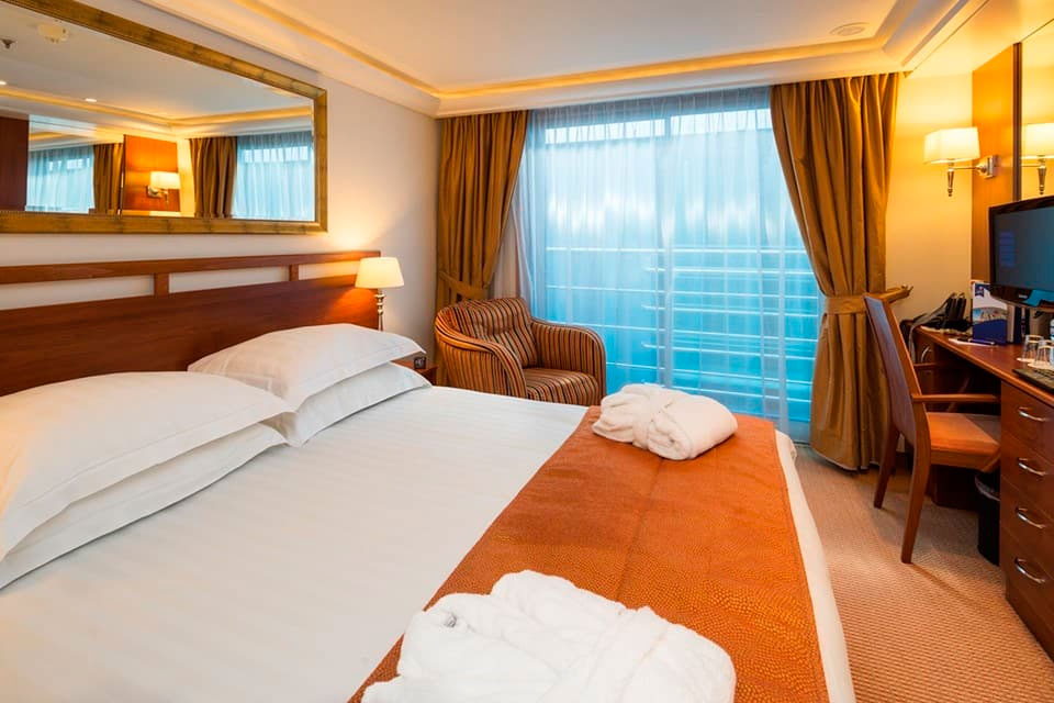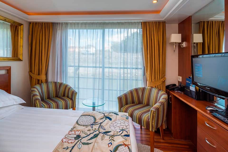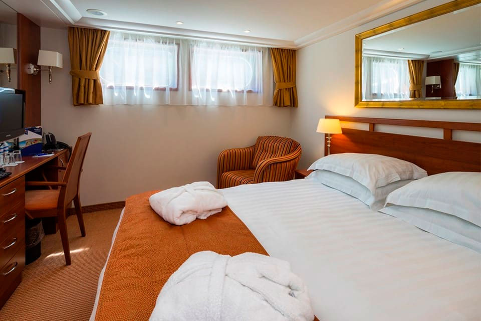Relájese y rejuvenezca en camarotes amplios y lujosos con una gran cantidad de comodidades. La mayoría cuenta con balcones franceses que ofrecen impresionantes vistas del paisaje a lo largo del río.