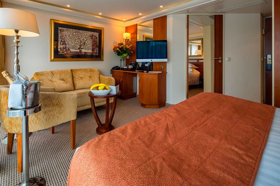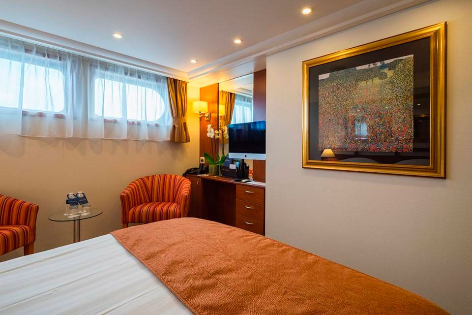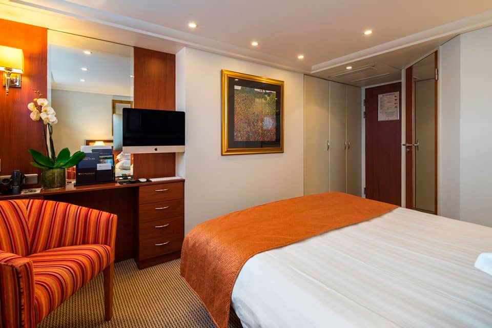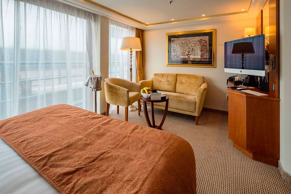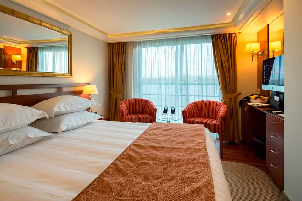Relájese y rejuvenezca en camarotes amplios y lujosos con una gran cantidad de comodidades. La mayoría cuenta con balcones franceses que ofrecen impresionantes vistas del paisaje a lo largo del río.
