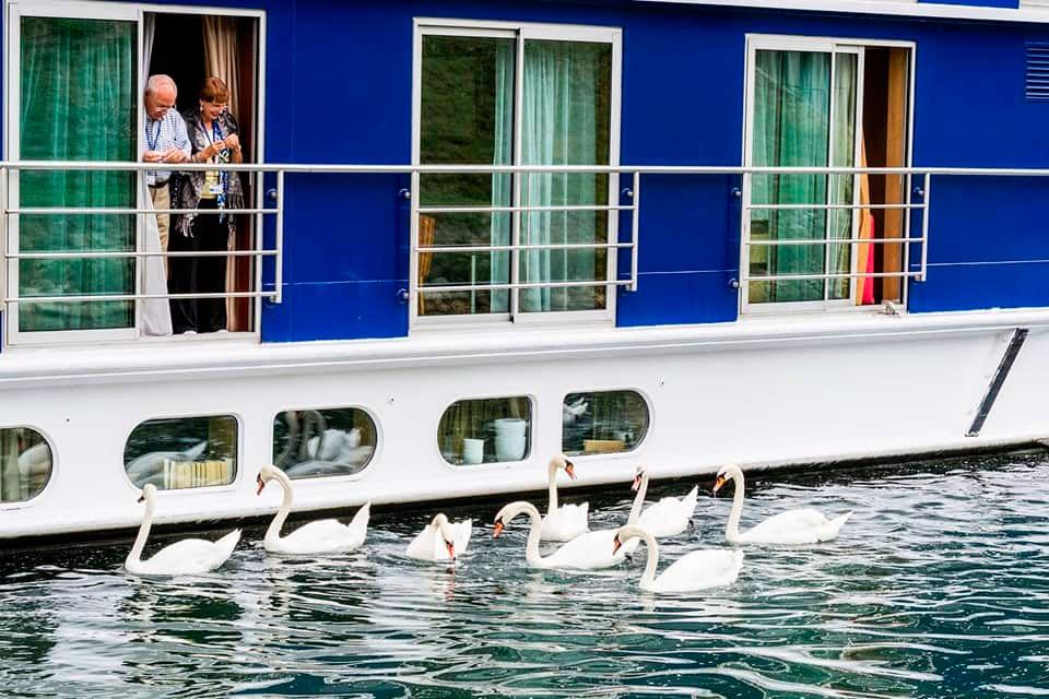 Disfrute de la bañera de hidromasaje en la cubierta de sol mientras pasamos por castillos centenarios, pueblos encantadores y otros paisajes impresionantes.