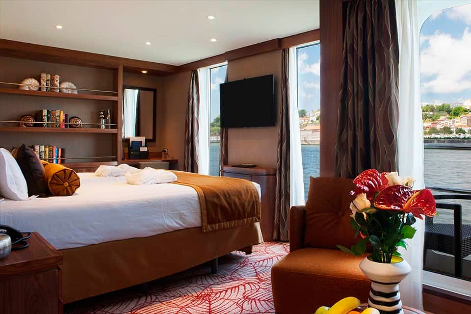 Relájese y rejuvenezca en camarotes amplios y lujosos con una gran cantidad de comodidades. La mayoría cuenta con balcones exteriores que ofrecen impresionantes vistas del paisaje a lo largo del río.