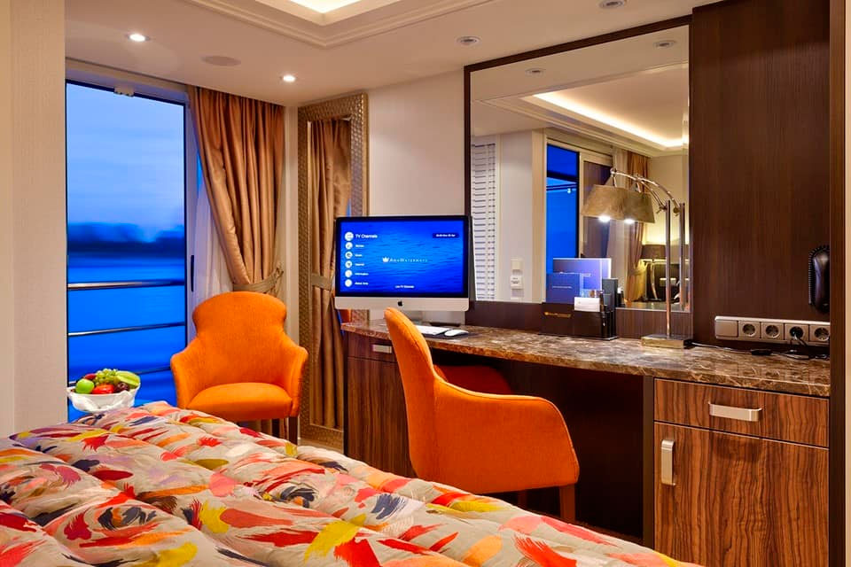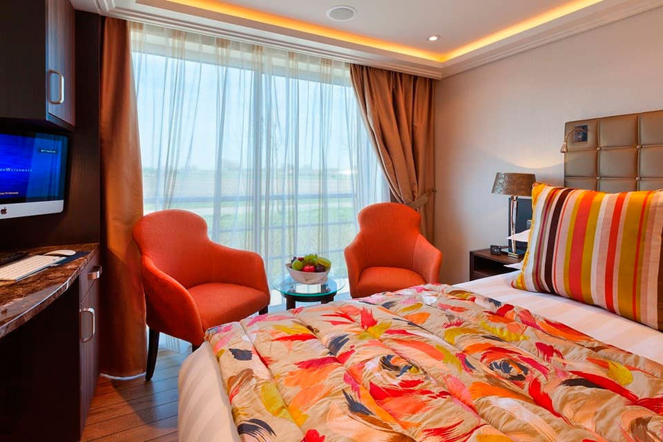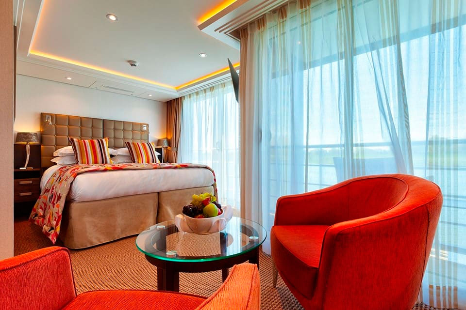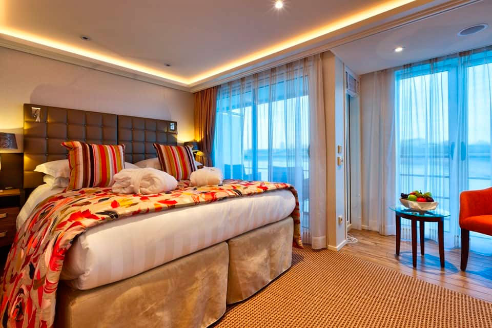 Disfrute de vistas panorámicas y mucho aire fresco en nuestros lujosos camarotes con dos balcones que cuentan con un balcón francés y un balcón exterior.