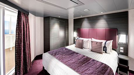 Elige entre una gran variedad de cómodos y elegantes camarotes, incluyendo alojamiento para familias, suites dúplex con bañera de hidromasaje privada, y el más alto ratio de camarotes con balcón que cualquier barco de crucero.