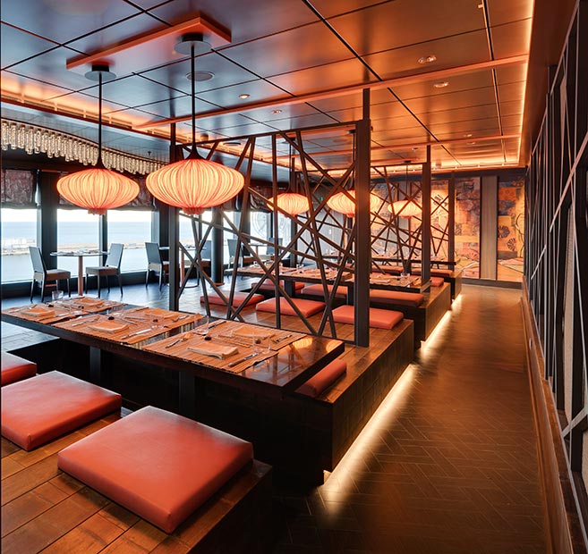 Diseñado por el premiado Chef Roy Yamaguchi, nuestro restaurante Pan-Asian ofrece una experiencia culinaria inolvidable. El Chef Yamaguchi, creador de la cocina de fusión hawaiana, combina su herencia culinaria japonesa con el amor al producto fresco de sus ingredientes. El chef cuida su creatividad hasta el último detalle, ya sea creando sus recetas o sugiriendo los vinos más adecuados para sus platos, así como escogiendo la cuberteria y música para para poder mejorar la experiencia del cliente.