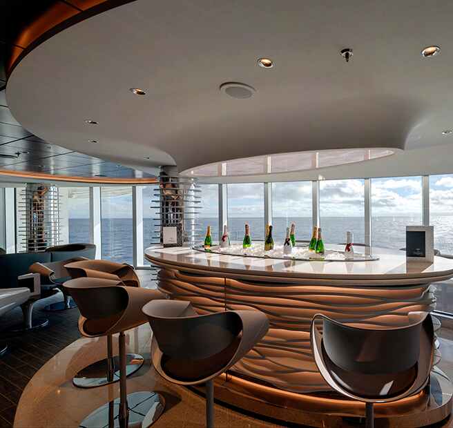 En MSC Seaside, podrás disfrutar de espectaculares vistas al mar mientras cenas. Y con 10 sitios diferentes para comer, incluyendo cinco sofisticados restaurantes temáticos, cenar en MSC Seaside va a ser tan variado como delicioso. También hemos pensado en las familias y hasta vas a encontrar un buffet solamente para niños. Para tomar el aperitivo perfecto antes de la cena, una copa en la noche o un refrésco a lo largo del día, hay una gran variedad de 19 bares y lounges, cada uno de ellos con su único ambiente.