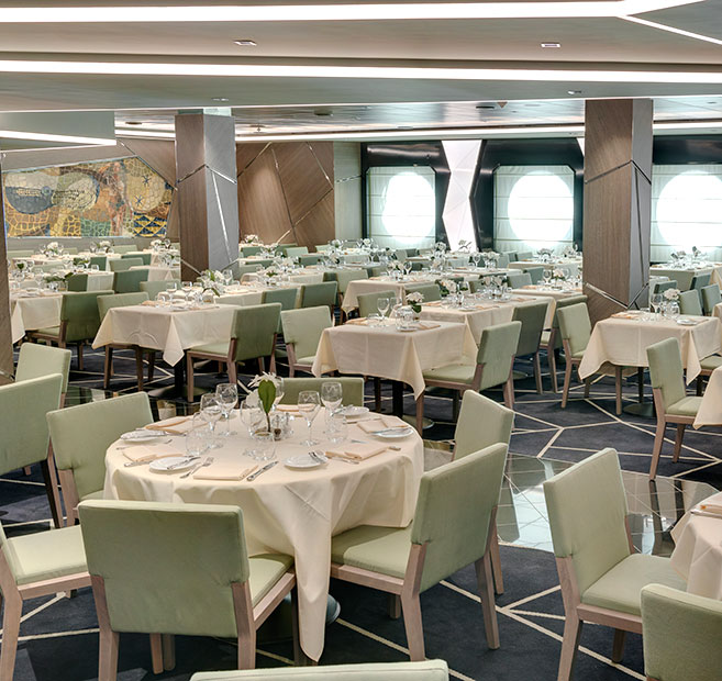 En los restaurantes principales de MSC Seaside se sirve una deliciosa cocina mediterránea e internacional en su máxima elegancia.