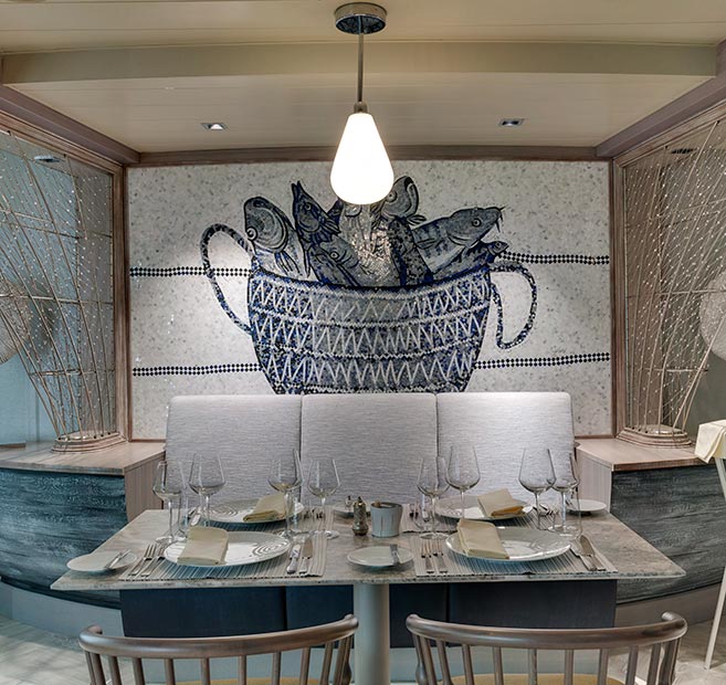 Un delicioso menú creado a partir de deliciosas recetas de pescado y mariscos, hecho con los ingredientes más frescos y servidos con un maravilloso vino: estos son los ingredientes mágicos de este restaurante a bordo de MSC Seaside. Para una experiencia aún más auténtica, te recomendamos probar la selección del chef.