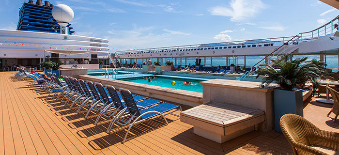 Amplias piscinas de agua salada que se encuentran incluídas en la cubierta superior del barco Zenith. Todas ellas están adaptadas para el disfrute de todo la familia, incluyendo los niños.